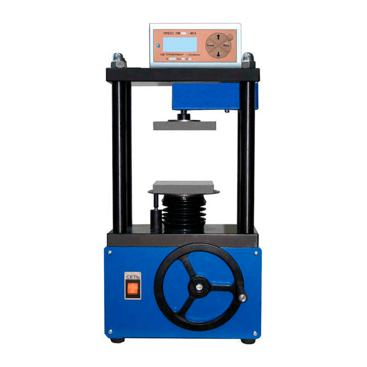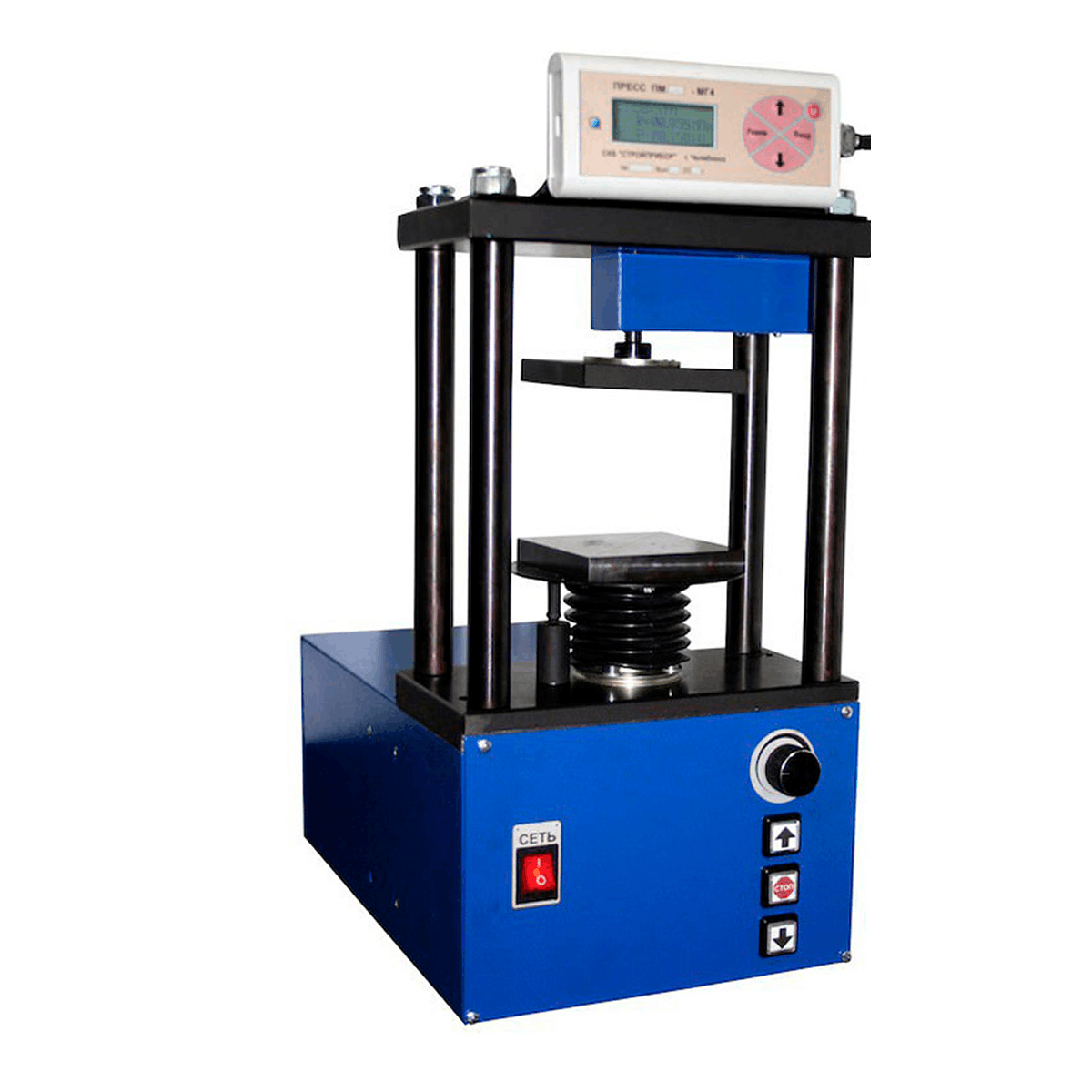 Прессы снабжены ручным механическим или электрическим приводом механизма нагружения, тензометрическим силоизмерителем и датчиком перемещения.
