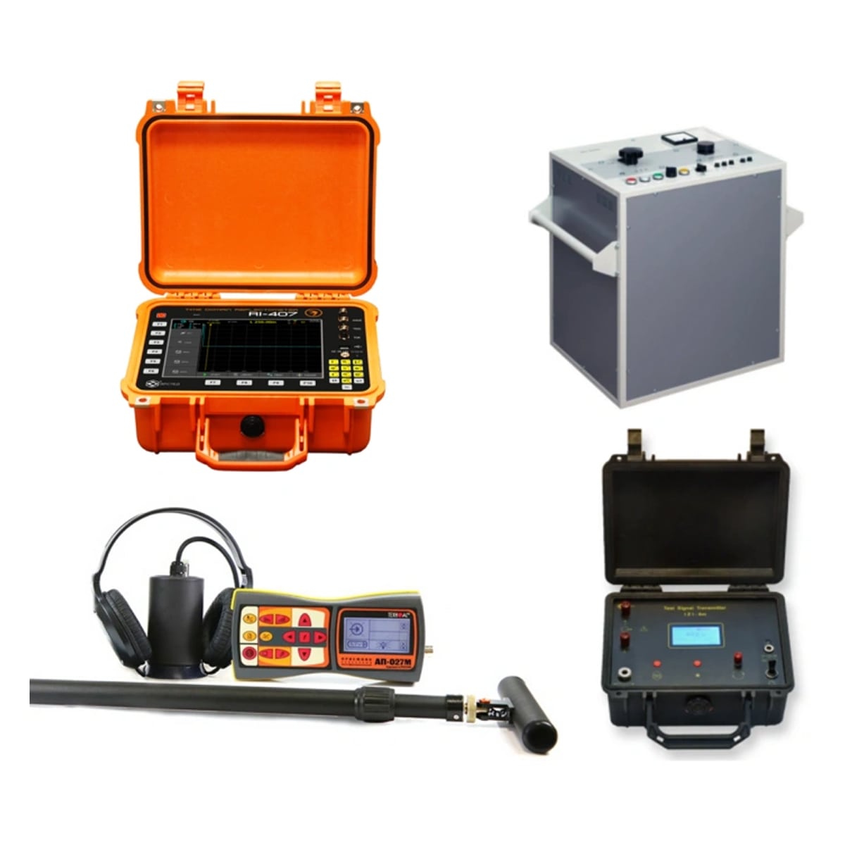 Реализация всех основных методов определения мест повреждений в силовых кабелях. Методы поиска: Рефлектометрический, Импульсно-Дуговой, Колебательного разряда (по току), Акустический, Индукционный. Выходное напряжение – до 16 кВ, дальность 0…256 км.