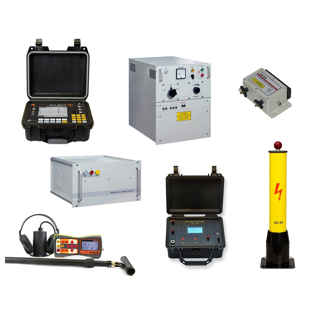 Реализация всех основных методов определения мест повреждений в силовых кабелях. Методы поиска: Рефлектометрический, Импульсно-Дуговой, Колебательного разряда (по току), Акустический, Индукционный. Выходное напряжение – до 32 кВ, дальность 0…160 км.